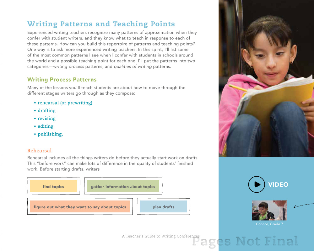 Helping students become better writers is what writing conferences are all about.In A Teacher’s Guide to Writing Conferences, Carl Anderson explains the underlying principles and reasons for conferring with students, and how to make writing conferences a part of your daily routine. With clear and accessible language, Carl guides you through the three main parts of a writing conference, and shows you the teaching moves and intentional language that can be used in each one.  He helps you understand: