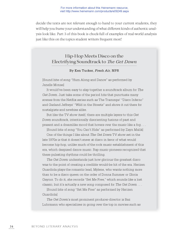 With samples throughout the book, you’ll see what students of all levels and experiences can do when they’re supported with mentor texts, targeted writing instruction, and the opportunity to write beyond literary analysis.