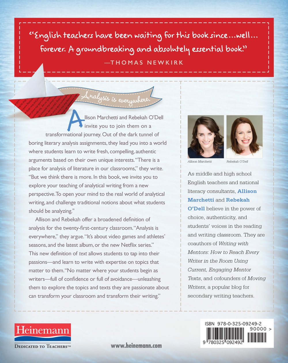 Allison Marchetti and Rebekah O’Dell invite you to join them on a transformational journey.  Out of the dark tunnel of boring literary analysis assignments, they lead you into a world where students learn to write fresh, compelling, authentic arguments based on their own unique interests.  “There is a place for analysis of literature in our classrooms,” they write.  “But we think there is more.  In this book, we invite you to explore your teaching of analytical writing from a new perspective. To open your mind to the real world of analytical writing, and challenge traditional notions about what students should be analyzing and how they should write it.”
