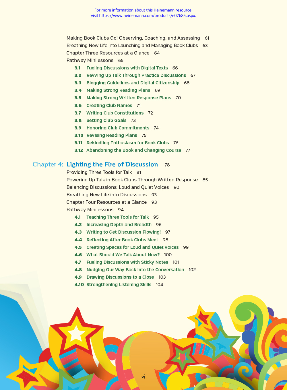 With both infectious enthusiasm and a realistic perspective, Sonja and Dana take on teachers’ doubts and concerns about book clubs, and build a compelling case for their value in every classroom. They provide all the nuts and bolts for creating and managing successful book clubs, including: