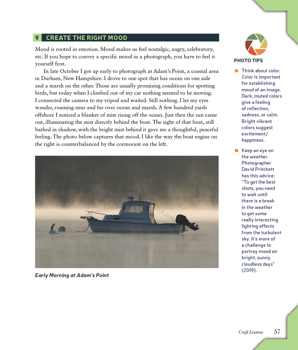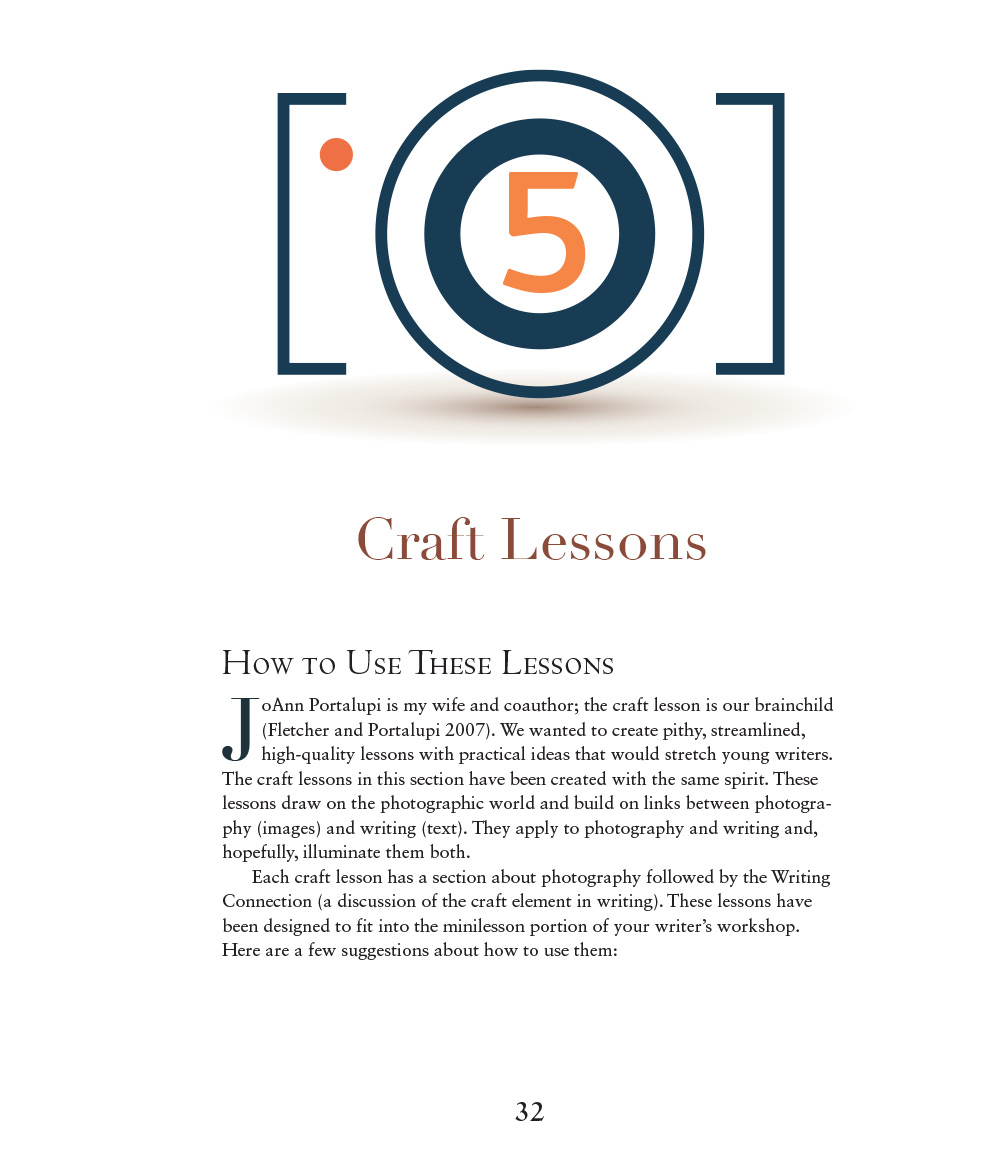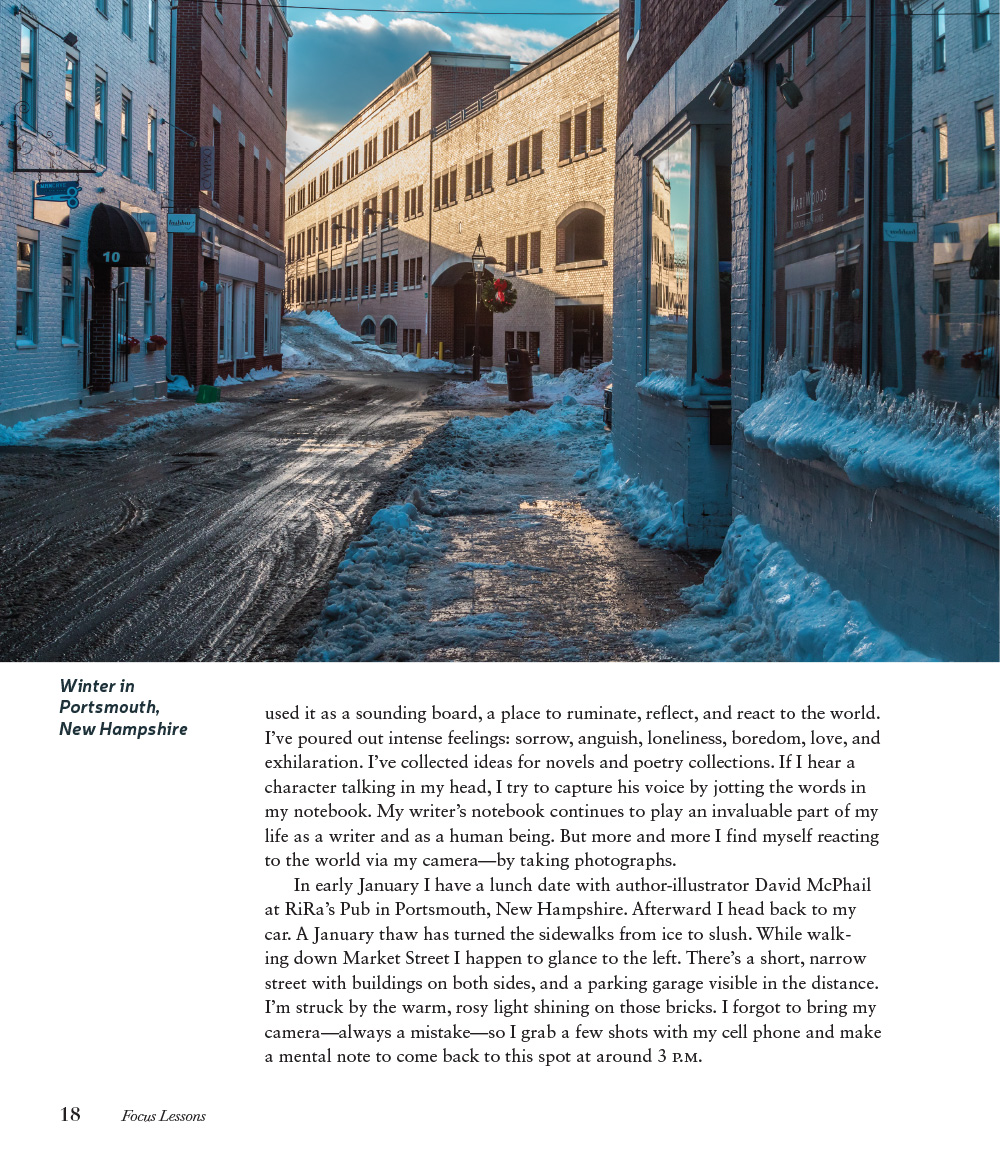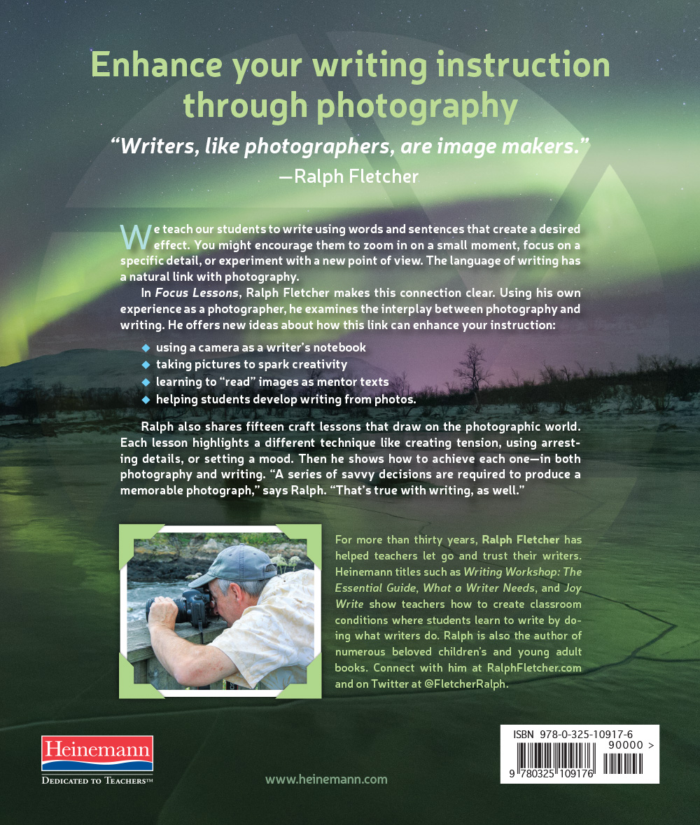 Ralph also shares fifteen craft lessons that draw on the photographic world. Each lesson highlights a different technique like creating tension, using arresting details, or setting a mood. Then he shows how to achieve each one—in both photography and writing.