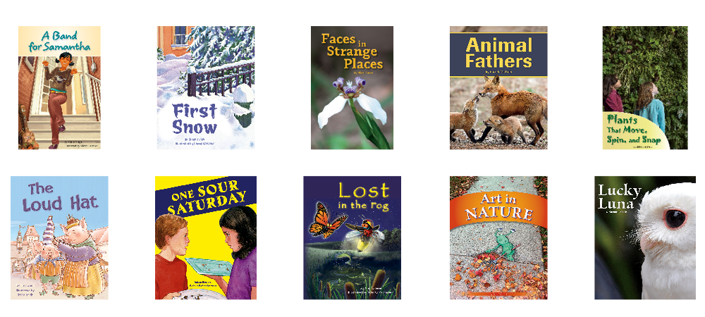 • 10 original titles (6 copies of each title) at text level M on the F&P Text Level Gradient™: A Band for Samantha; First Snow; Faces in Strange Places; Animal Fathers; Plants That Move, Spin, and Snap; The Loud Hat; One Sour Saturday; Lost in the Fog; Art in Nature; Lucky Luna