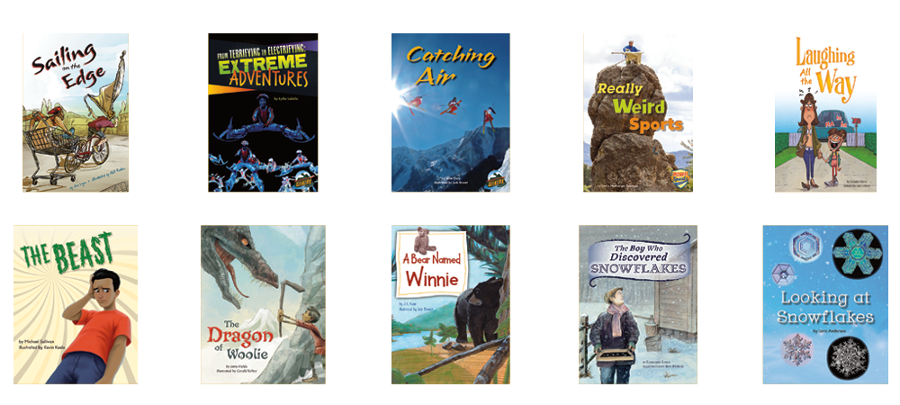 • 10 original titles (6 copies of each title) at text level R on the F&P Text Level Gradient™: Sailing on the Edge; From Terrifying to Electrifying: Extreme Adventures; Catching Air; Really Weird Sports; Laughing All the Way; The Beast; The Dragon of Woolie; A Bear Named Winnie; The Boy Who Discovered Snowflakes; Looking at Snowflakes