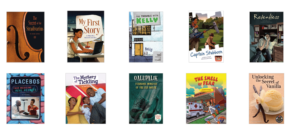 • 10 original titles (6 copies of each title) at text level X on the F&P Text Level Gradient™: The Secret of the Stradivarius; My First Story; The Trouble with Kelly; Captain Stubborn; Relentless; Placebos: Fake Medicine, Real Results; The Mystery of Tickling; Qalupalik: Fearsome Monster of the Far North; The Smell of Fear; Unlocking the Secret of Vanilla