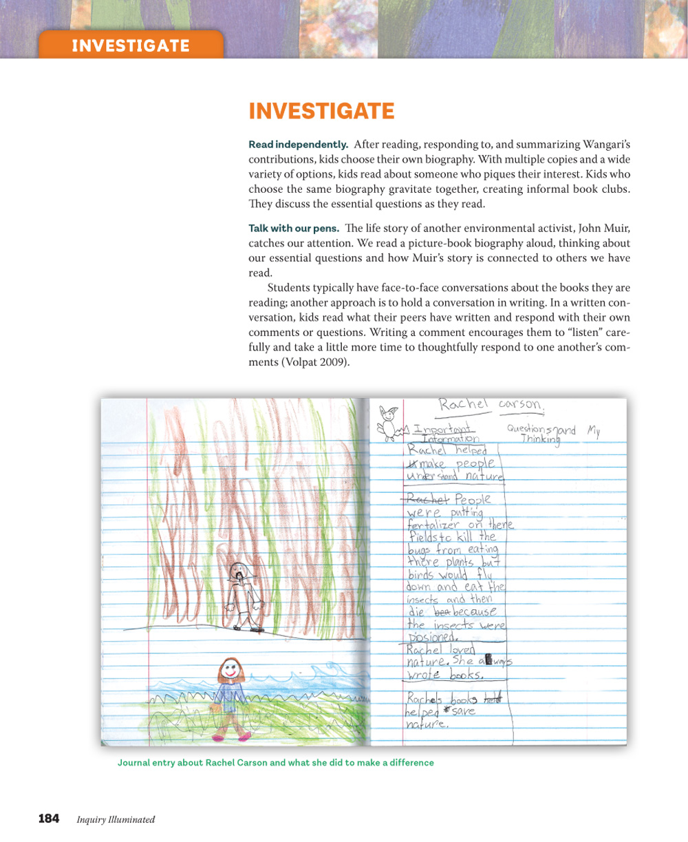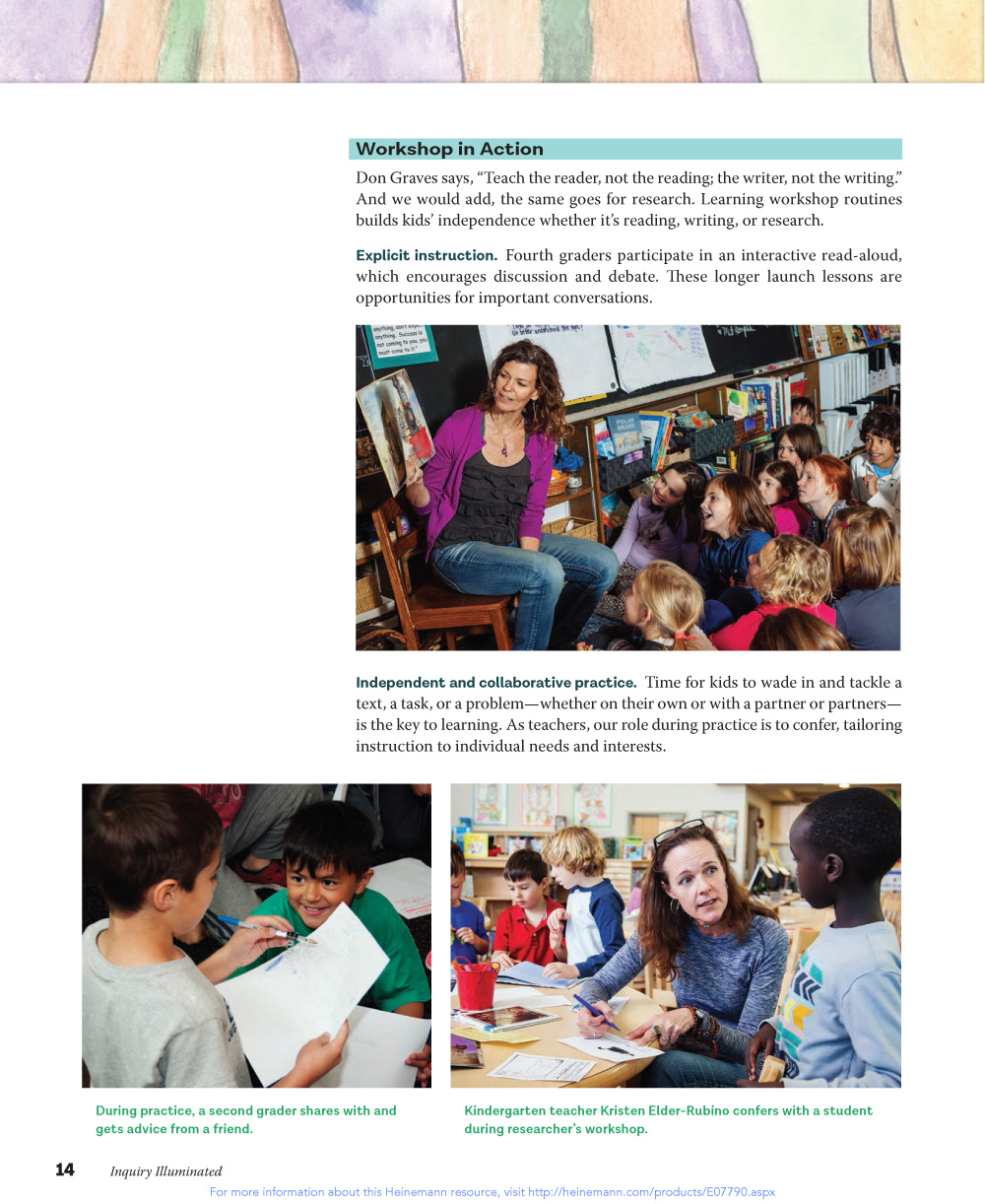 With copious full-color photographs and classroom video, Inquiry Illuminated shows how to create a culture where thoughtfulness, creativity, and collaboration can turn wonder into powerful inquiry. Then, with researcher’s workshop, you’ll uncover a process that transforms curiosity into opportunities to ask questions and follow a path to new understandings. Throughout you’ll discover how to bring in what you already do in reader’s and writer’s workshop to support students’ investigations as they read, write, create, and take action.