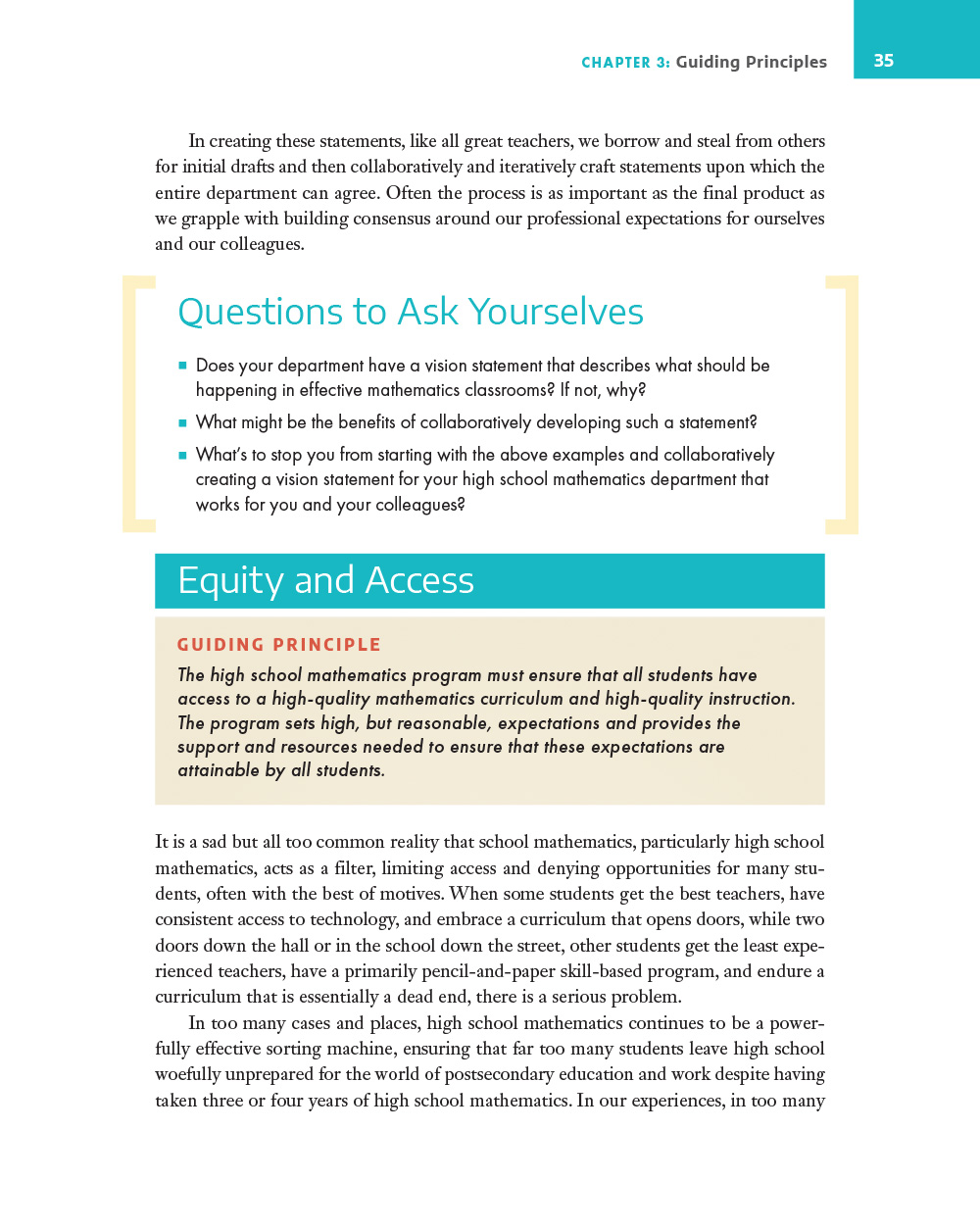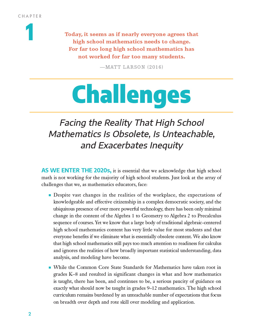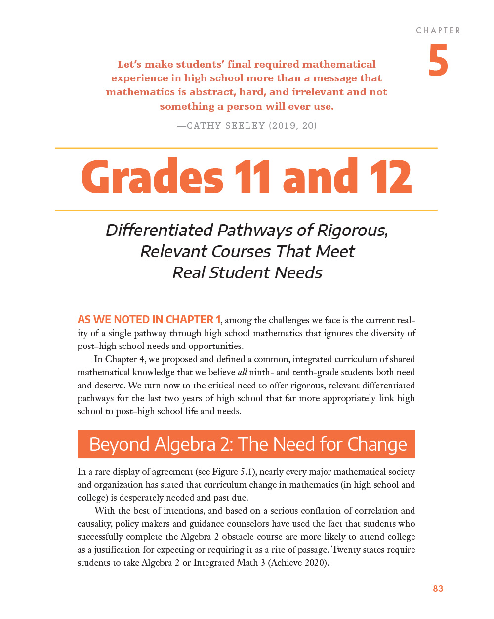 This book was written for every high school math educator and leader—as both a stimulus for discussion and a road map for change. “Our hope,” say the authors, “is that this book stimulates change, empowers teachers, and guides the profession on this critical journey to invigorate high school mathematics.”