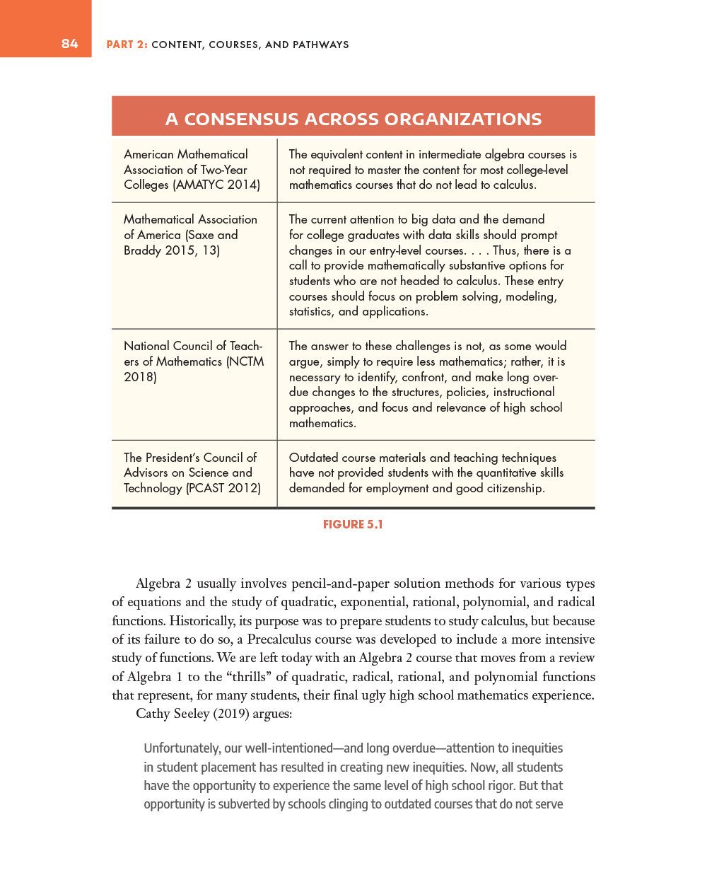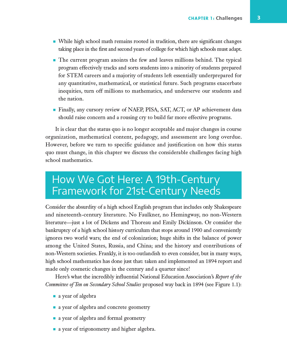 Even traditionalists recognize that the status quo is no longer acceptable. Major shifts in course organization, mathematical content, pedagogy, and assessment are long overdue.