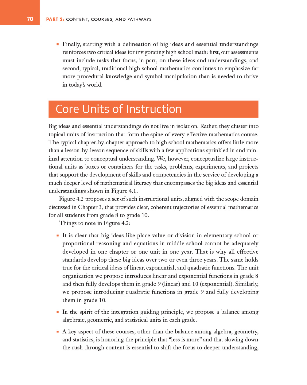 • creating core integrated math courses for grades 9 and 10 and coherent pathways for grades 11 and 12