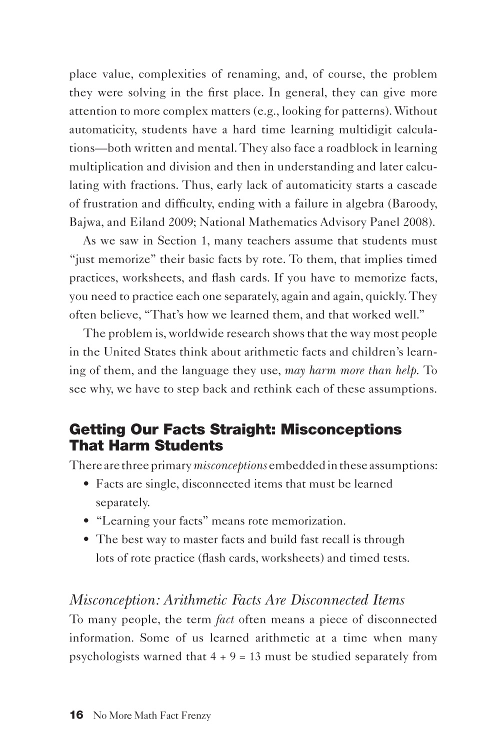No More Math Fact Frenzy addresses this by examining current research about how to effectively build students' math fact knowledge. The authors then share a new set of best-practices: classroom activities that build students’ number sense and strategies that lead to flexible thinking.