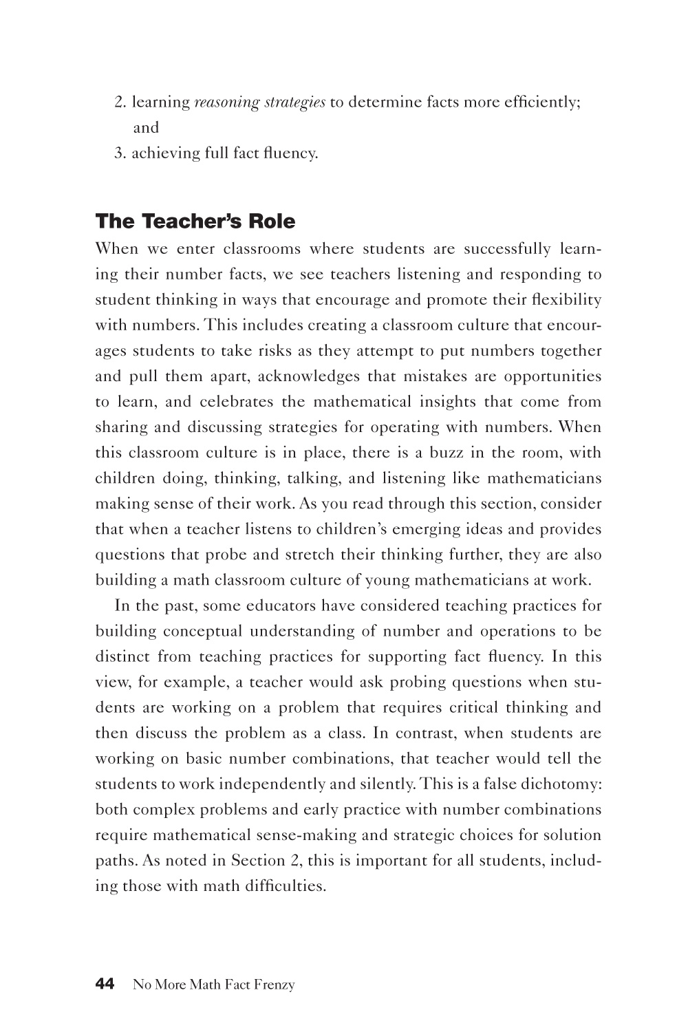 Then they share recommendations for all three phrases: activities and games that build number sense, strategies that lead to flexible thinking, and ways to create and sustain a classroom culture of fluency. This kind of teaching helps students learn their math facts more successfully—and with less stress and anxiety.
