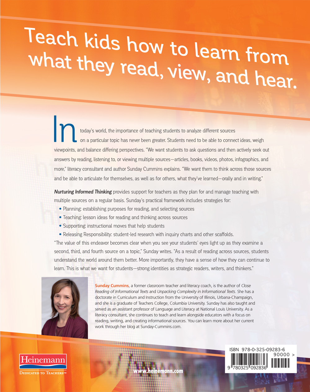 Nurturing Informed Thinking provides support for teachers as they plan for and manage teaching with multiple sources on a regular basis. Sunday’s practical framework includes strategies for:
