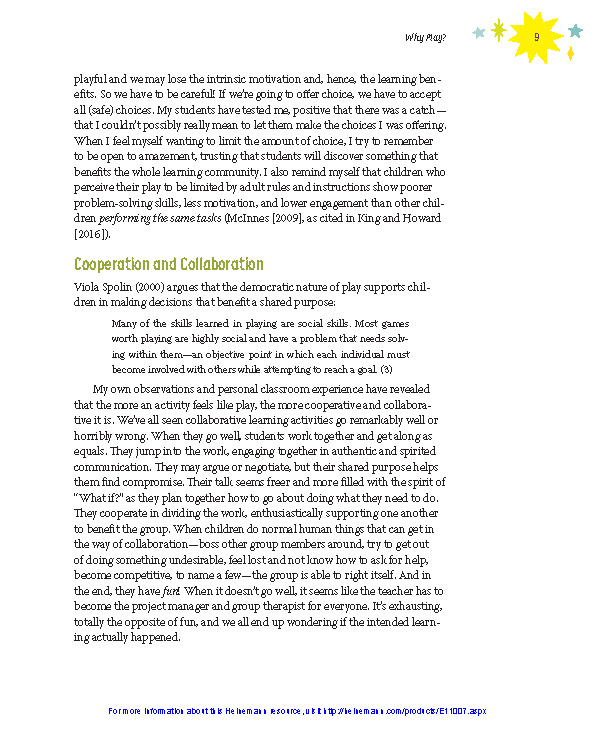 • A predictable framework for planning for play: invite, play, reflect