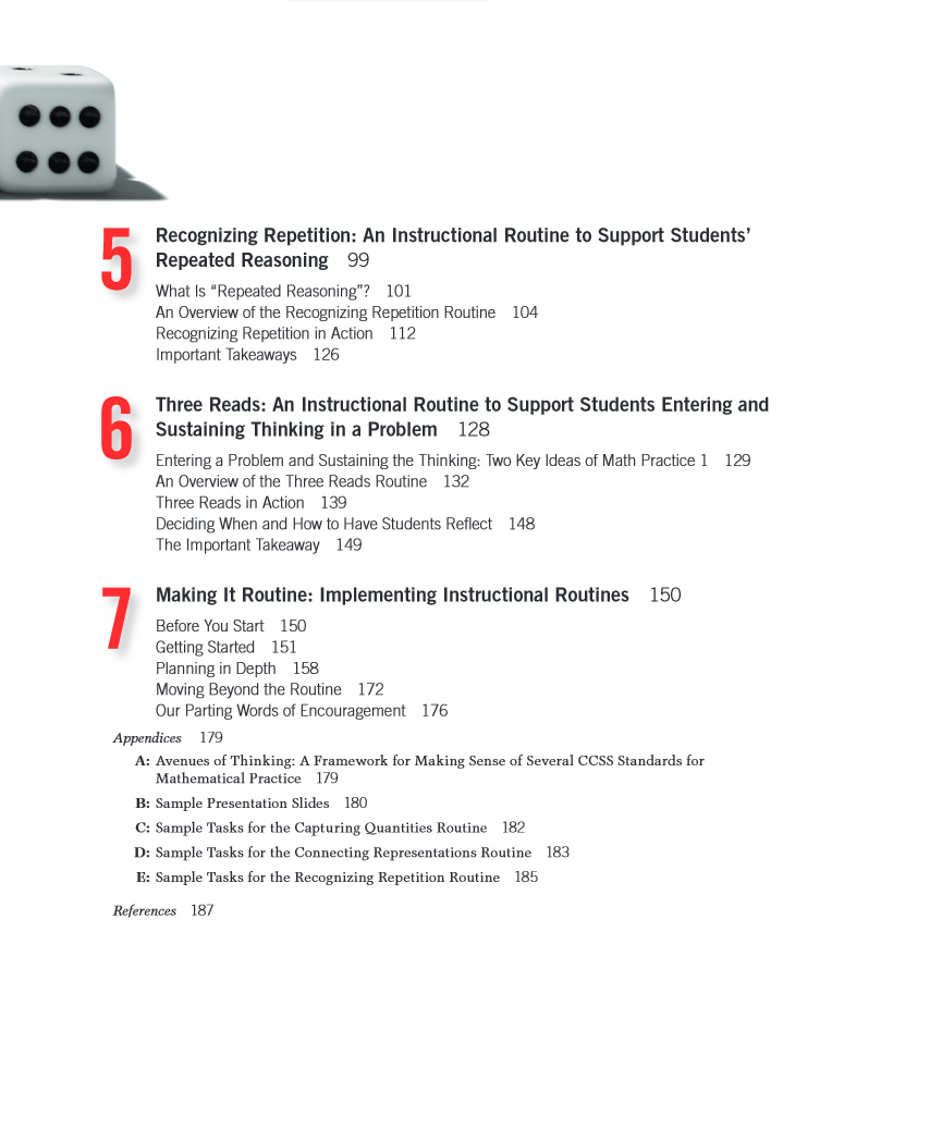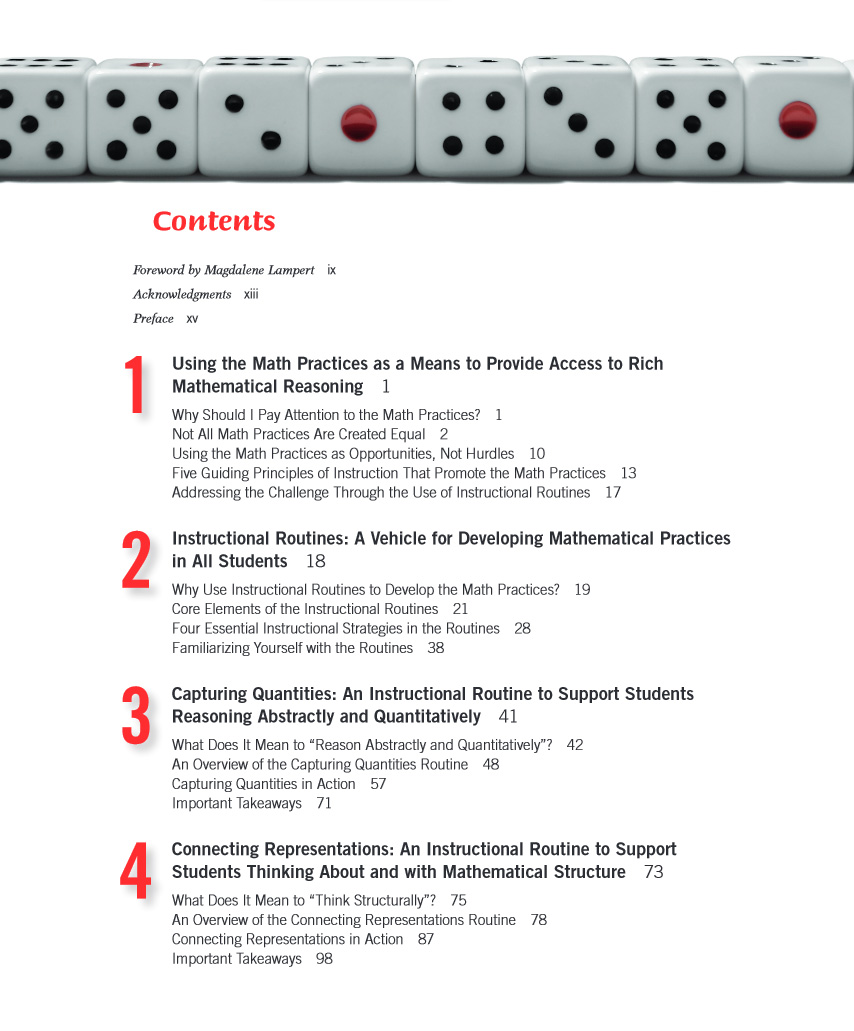 As a teacher, routines can keep your classroom running smoothly. Now imagine having a set of routines focused not on classroom management, but on helping students develop their mathematical thinking and reasoning skills. Routines for Reasoning provides expert guidance for weaving the Standards for Mathematical Practice into your teaching by harnessing the power of classroom-tested instructional routines.