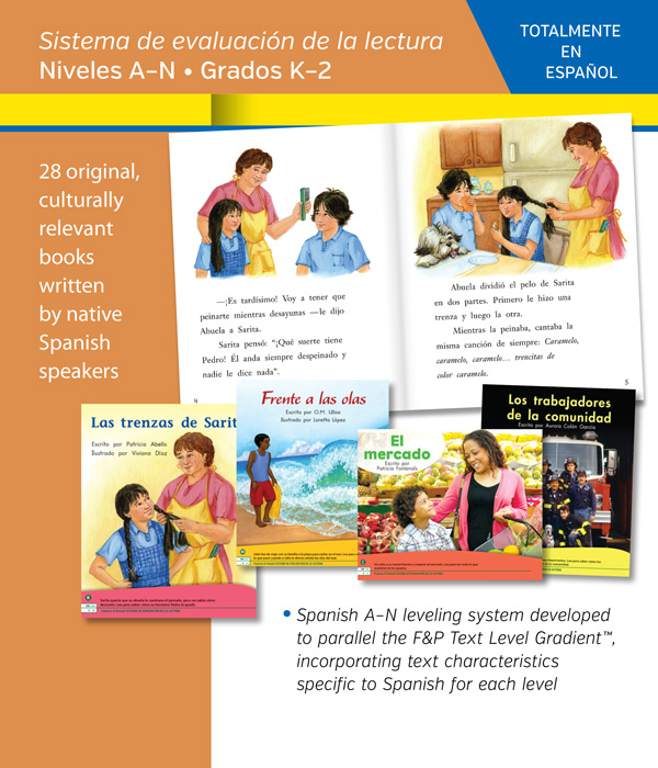 - Spanish A–N leveling system developed to parallel the F&P Text Level Gradient™, incorporating text characteristics specific to Spanish for each level