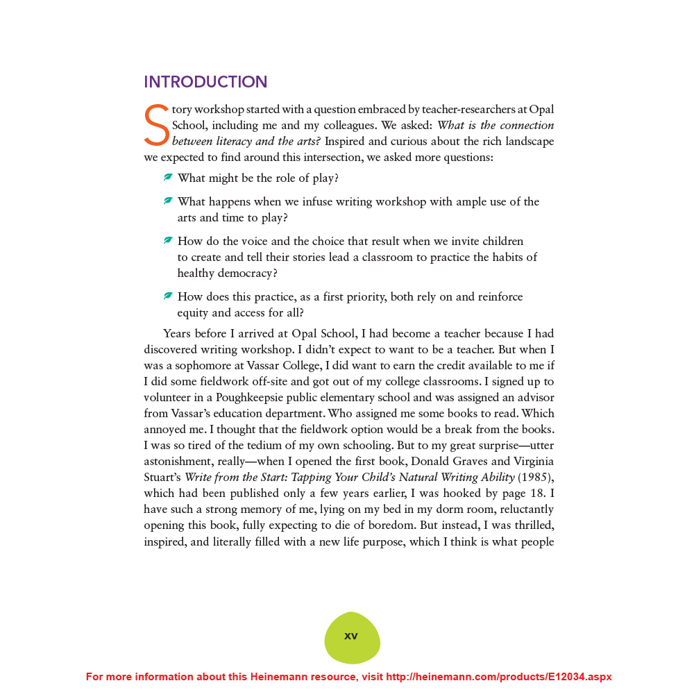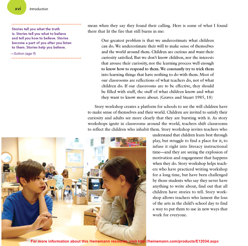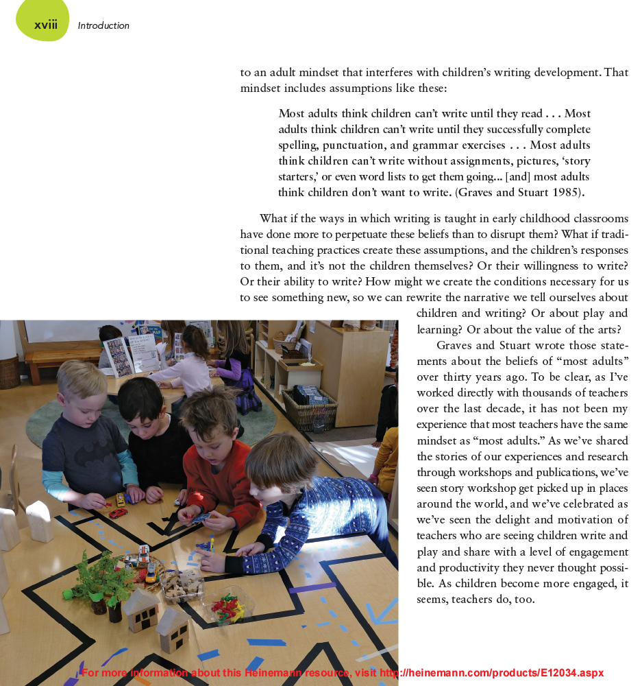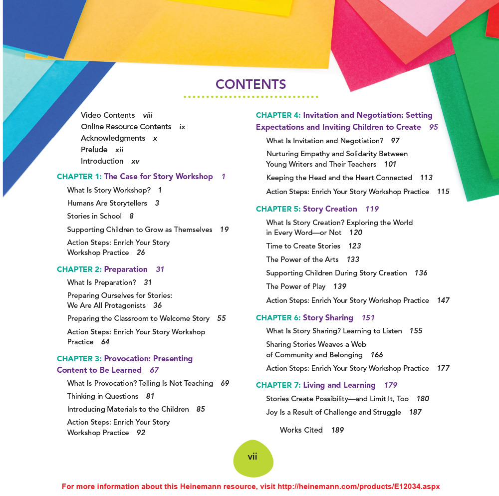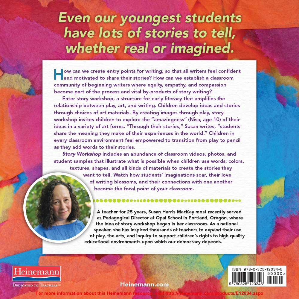 Story Workshop includes an abundance of classroom videos, photos, and student samples that illustrate what is possible when children use words, colors, textures, shapes and all kinds of materials to create the stories they want to tell.  Watch how students’ imaginations soar, their love of writing blossoms, and their connections with one another become the focal point of your classroom.