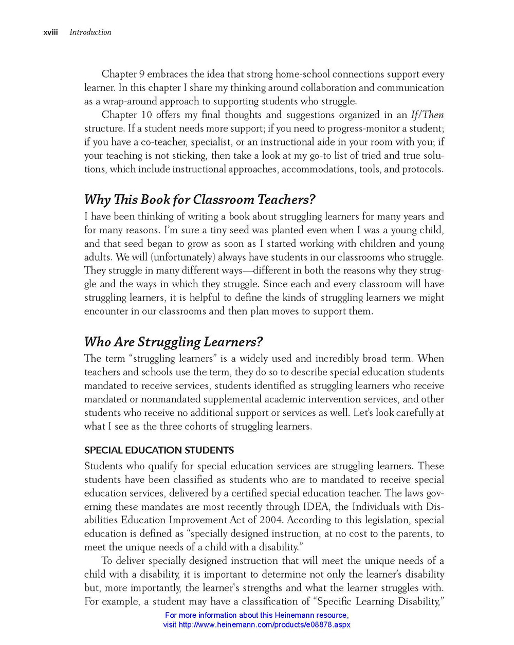 As teachers, how do you meet the needs of all your students while also meeting the demands of the curriculum?  With over two decades of experience in the classroom as a teacher, staff developer, and national consultant, Patty Vitale-Reilly has been there. And with Supporting Struggling Learners, she shares 50 of her tried and true solutions that make learning accessible for all students.