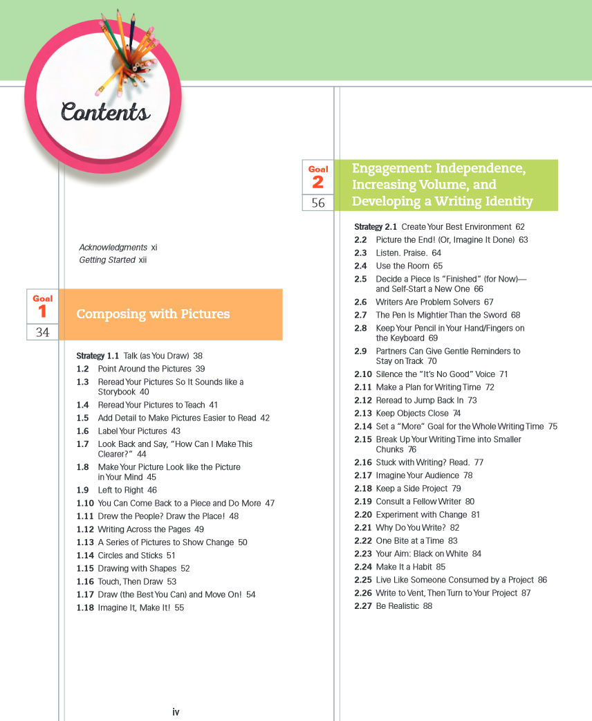 “You can think of the goals as the what, “writes Jen, “and the strategies as the how.” From composing with pictures all the way to conventions and beyond, you’ll have just-right teaching, just in time. With Jen’s help you’ll: