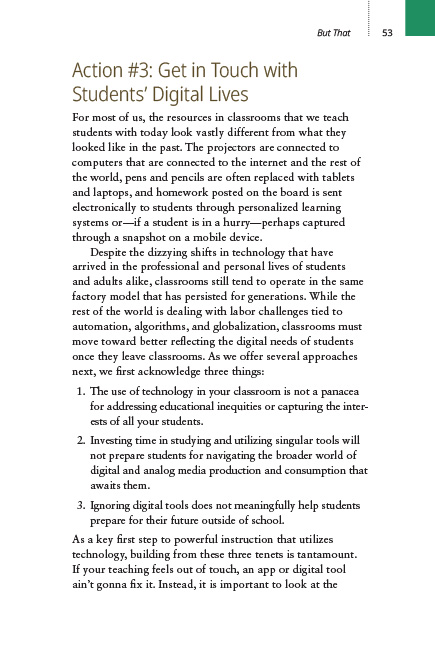 This book is an invitation to learn and grow alongside the suggestions and research presented. It offers guidance for more meaningful teaching in the present, and critical pedagogy for transforming classrooms for the societies of the future.