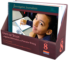 By the time children enter fifth grade, they will have been introduced to most if not all of the new skills expected of fifth-graders. The sequence of fifth grade units consolidates those skills and introduces the learning objectives called for in the sixth-grade standards: how to conduct research using primary sources, how to write narratives that are reflective and theme-based, and how to write argument essays that use counterargument to clarify a position. Unit 1, Narrative Craft, helps students deliberately use their knowledge of narrative craft to make their stories more thematic. In Unit 2, The Lens of History: Research Reports, students draw inspiration and understanding from mentor texts, historical accounts, primary source documents, maps, and timelines to write focused research reports that engage and teach readers. Building on these new skills, Unit 3, Shaping Texts: From Essay and Narrative to Memoir helps students grasp that form follows content, learning to take insights about their lives and decide whether these are best expressed in narratives, in essays, or in a hybrid genre created especially to convey the writer’s content. In the concluding unit of this series, The Research-Based Argument Essay, fifth-graders learn to build powerful arguments that convincingly balance evidence and analysis to persuade readers to action.