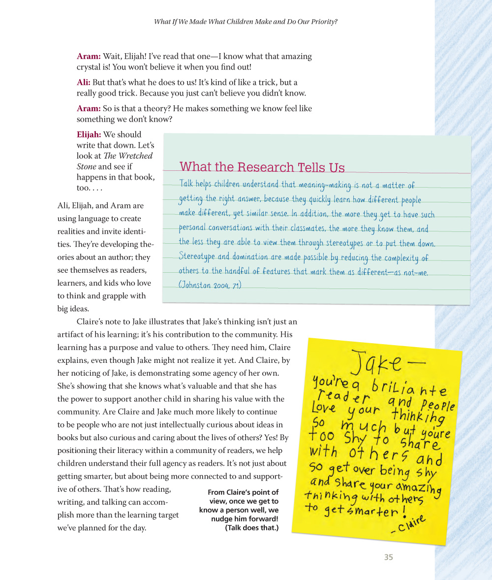 • What if read aloud sustained children’s independent thinking?